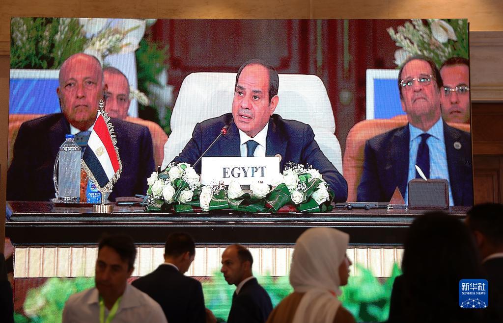 巴勒斯坦問題峰會21日在開羅附近的埃及新行政首都舉行,與會各方討論如何解決巴以新一輪沖突升級問題,并呼吁巴以?;鹬箲?。
