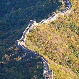 深秋時節,北京慕田峪長城內外層林盡染,長城蜿蜒,景色壯美。