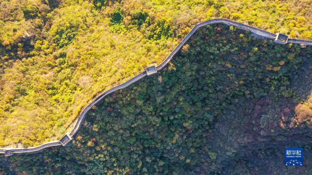 深秋時節,北京慕田峪長城內外層林盡染,長城蜿蜒,景色壯美。
