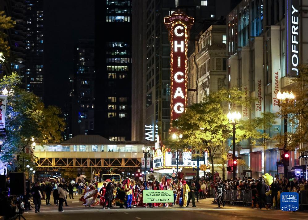 當日,美國芝加哥舉行名為“黑暗中的藝術”的萬圣節游行。