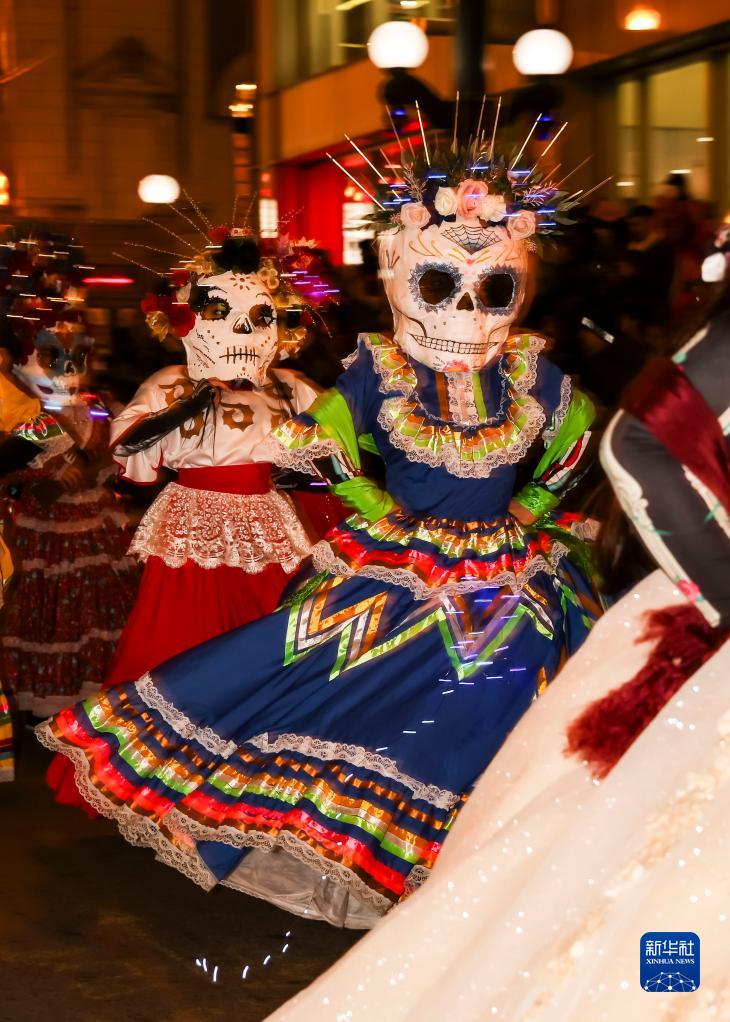 當日,美國芝加哥舉行名為“黑暗中的藝術”的萬圣節游行。
