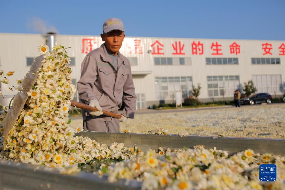 洋馬鎮有著60多年菊花中藥材種植及加工歷史,全鎮菊花種植面積近4萬畝,聚集菊花加工企業60余家。近年來,洋馬鎮用菊花經濟撬動鄉村振興,讓蘇菊成為帶動當地群眾增收的致富花。