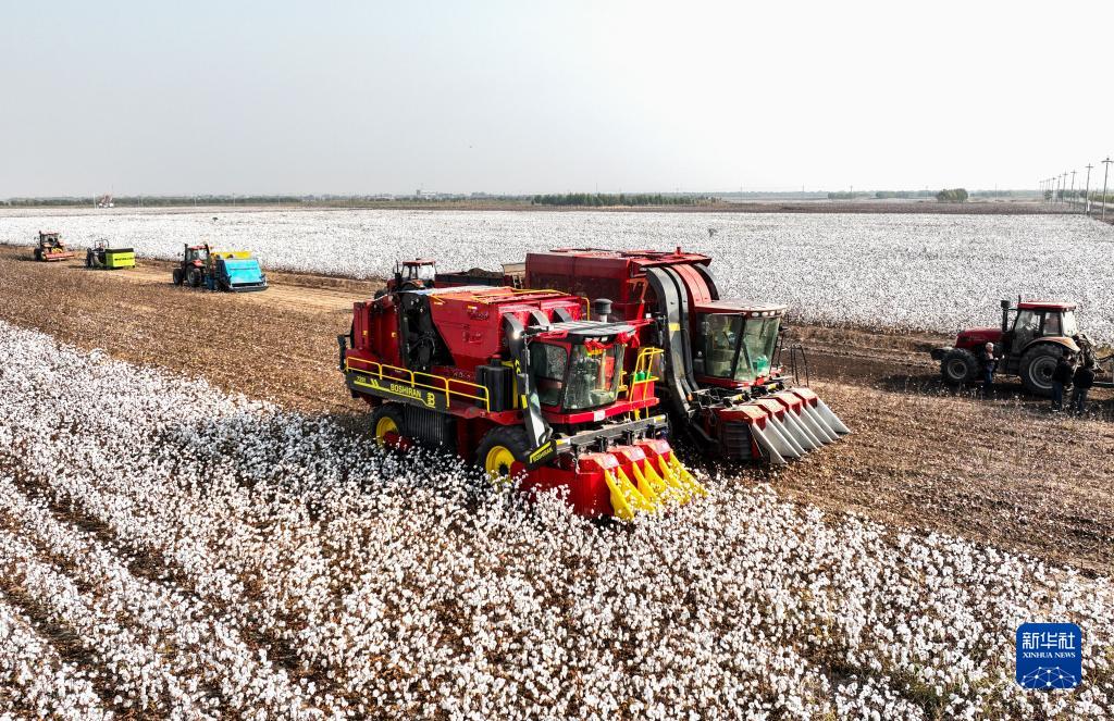 當日,山東省無棣縣西小王鎮國家級棉花生產基地核心示范區內一片棉花機采繁忙景象。無棣縣地處黃河三角洲棉區中心,可利用鹽堿耕地資源豐富,植棉歷史悠久,常年植棉面積穩定在10萬畝左右。近年來,該縣引進專業科研團隊,對接新型農業經營主體、涉棉企業,推動以全程機械化為支撐的黃河三角洲棉區棉花產業高質高效發展。