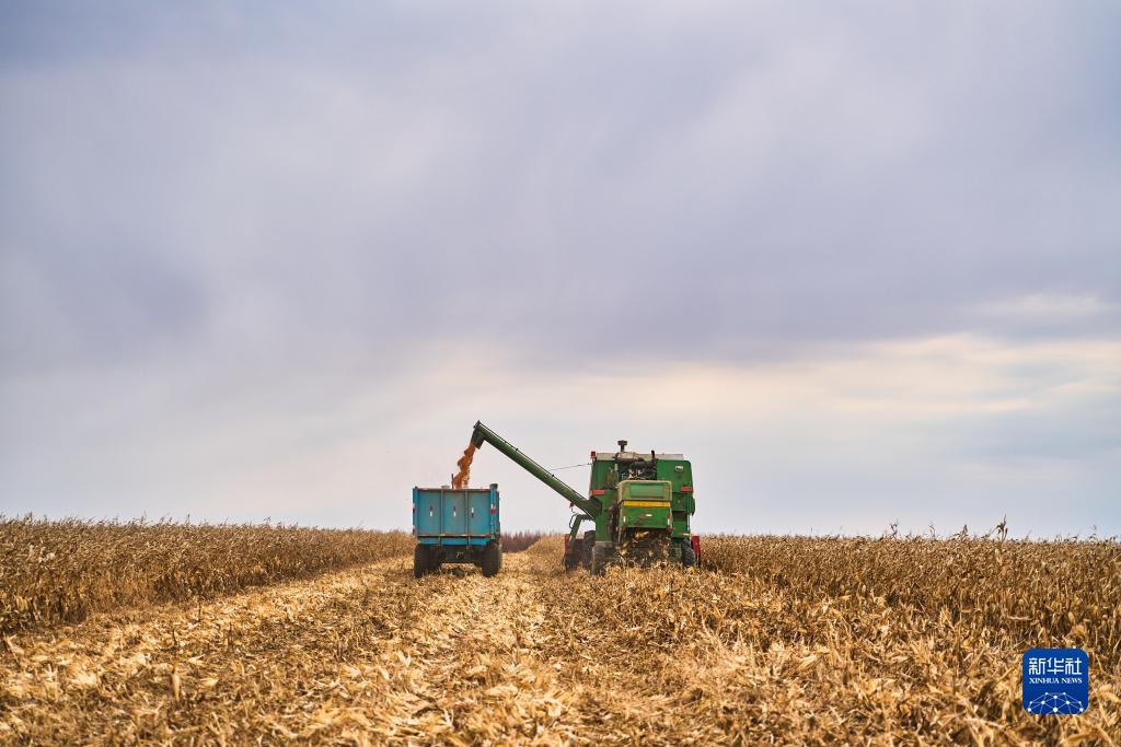 10月22日,在俄羅斯遠東城市烏蘇里斯克,農民操縱農機收割玉米。