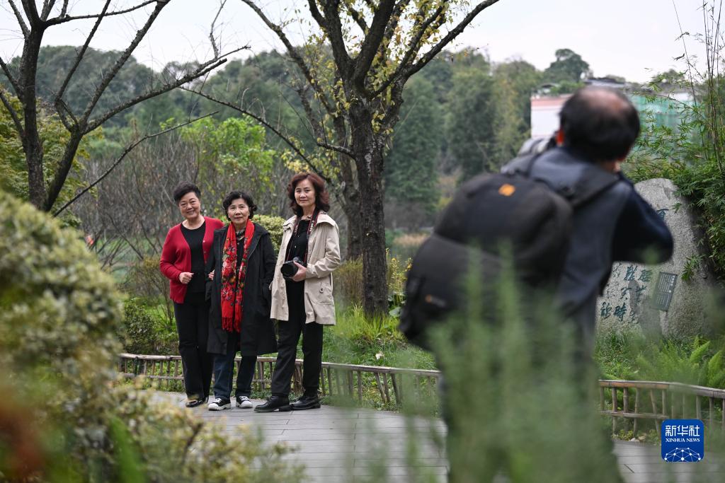 10月22日,李永東為妻子鄭義華(左一)和攝影班的同學拍照。
