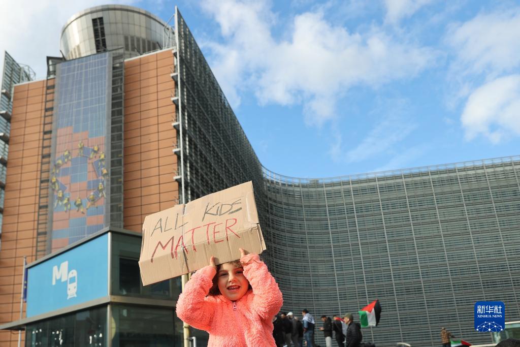 10月22日,在位于比利時布魯塞爾的歐盟總部附近,一名女孩手舉“所有孩子都重要”的標語參加集會。