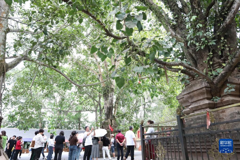 10月18日,游客在云南省景洪市勐罕鎮曼聽村參觀古榕樹。