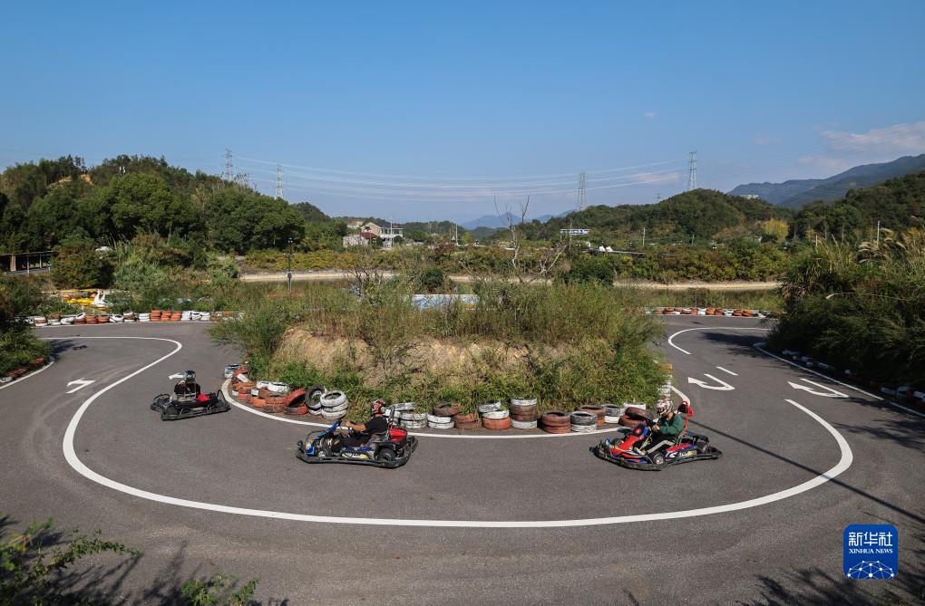 10月23日,游客在建德市楊村橋鎮嶺源樂活島休閑基地體驗卡丁車。