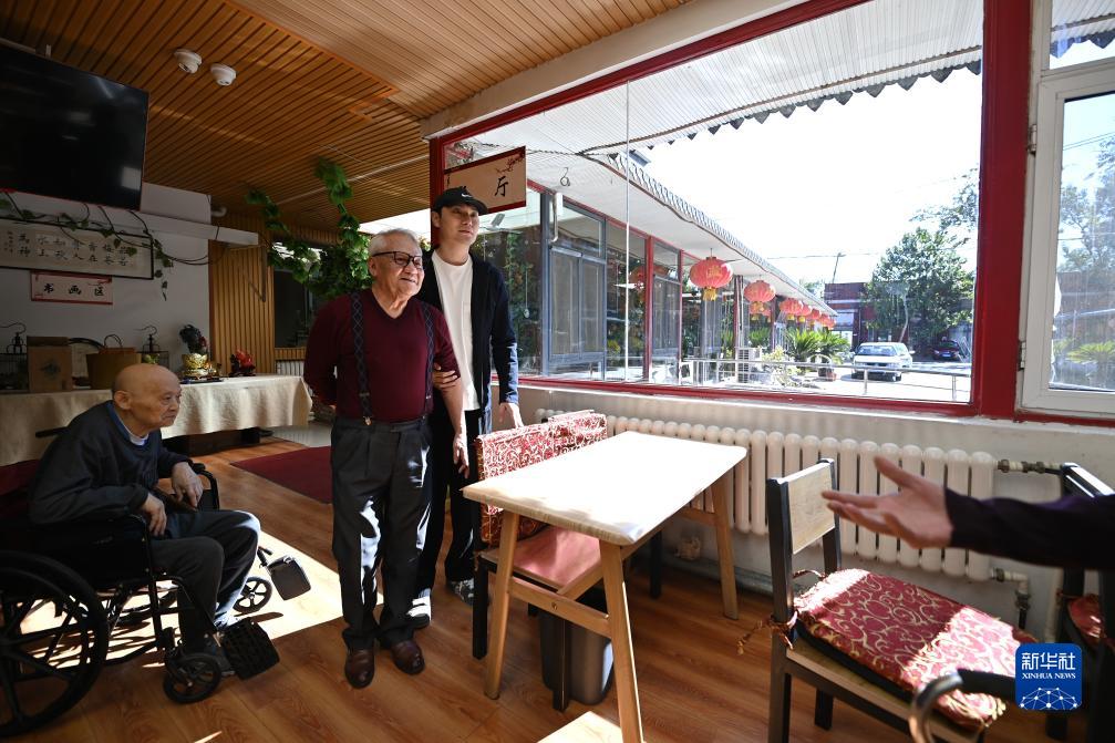 陳卓在靜雅老人院進行陪護工作(10月20日攝)。