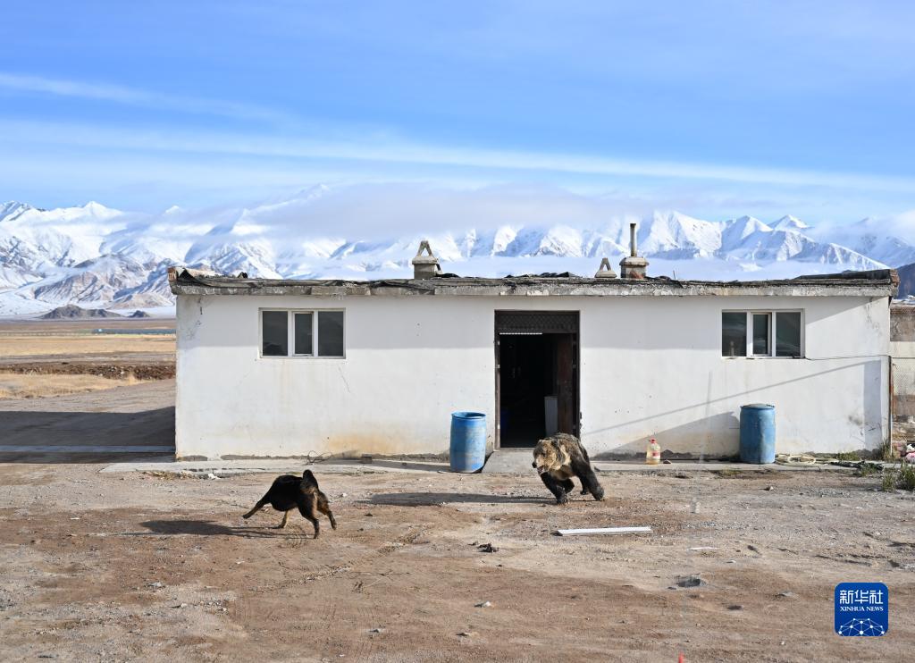 10月17日,一只藏馬熊(右)闖入阿爾金山國家級自然保護區依協克帕提管護站。
