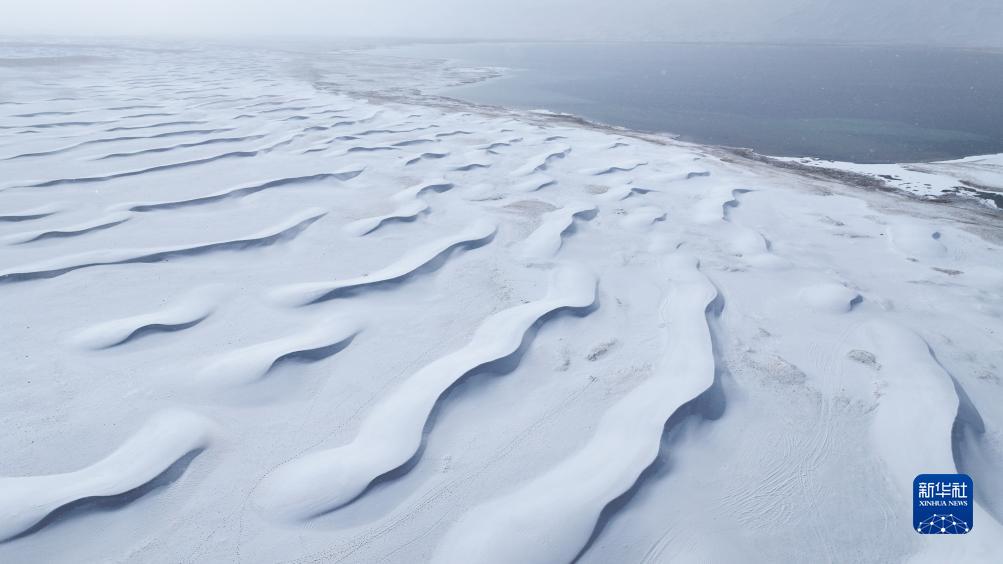 10月16日在阿爾金山國家級自然保護區拍攝的白雪覆蓋的庫木庫里沙漠(無人機照片)。