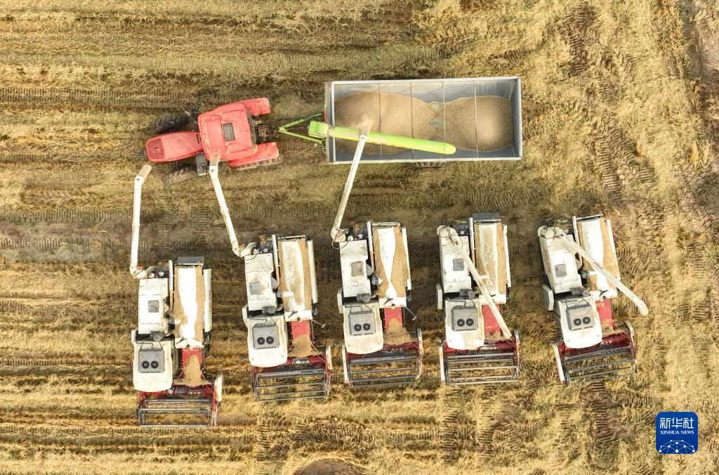 金秋時節,遼寧省阜新市彰武縣大冷鎮上三家子村的稻田里機聲隆隆,一片豐收的繁忙景象。