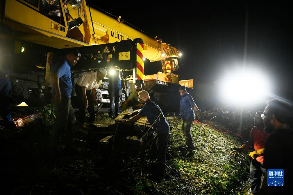 10月23日, 救援人員在孟加拉國吉紹雷甘杰地區火車相撞事故現場工作。