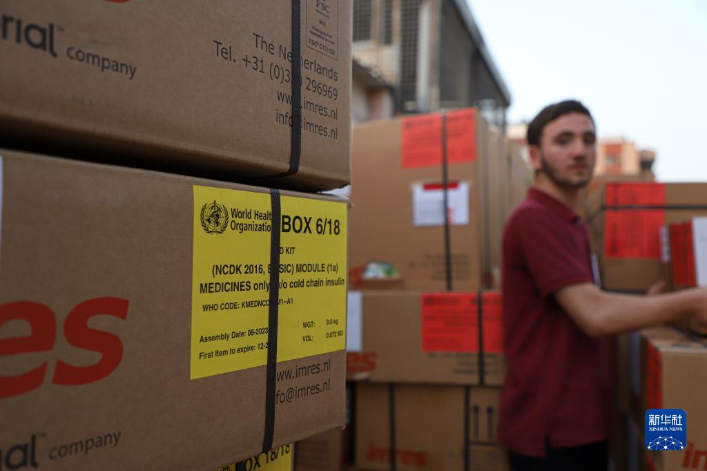 這是10月23日在加沙地帶南部城市汗尤尼斯拍攝的救援物資。