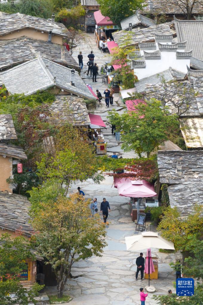 10月21日,游客在朱家灣村終南山寨民俗文化村內游覽(無人機照片)。