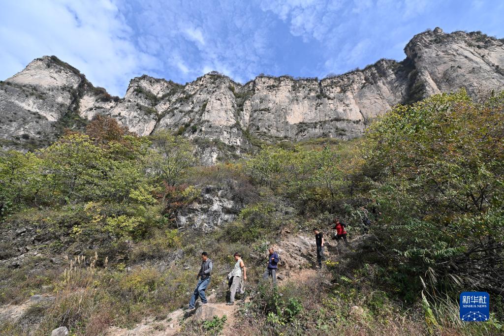 在壺關縣大峽谷鎮青龍峽村,村民們在修路間隙到山下休息(10月17日攝)。