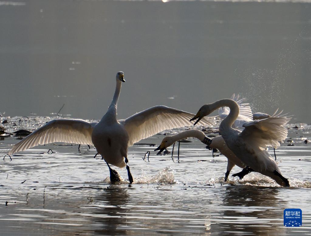 近日,河南省三門峽市天鵝湖國家城市濕地公園迎來首批越冬大天鵝。近年來,三門峽市積極改善黃河三門峽段生態環境,每年臨近冬季,都會有大批大天鵝陸續飛抵三門峽市境內的黃河濕地棲息越冬。
