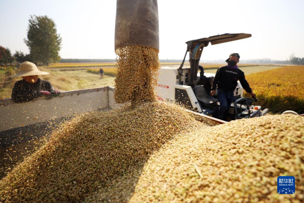 秋收時節,農民在田間忙著收獲各種作物,各地一派農忙景象。