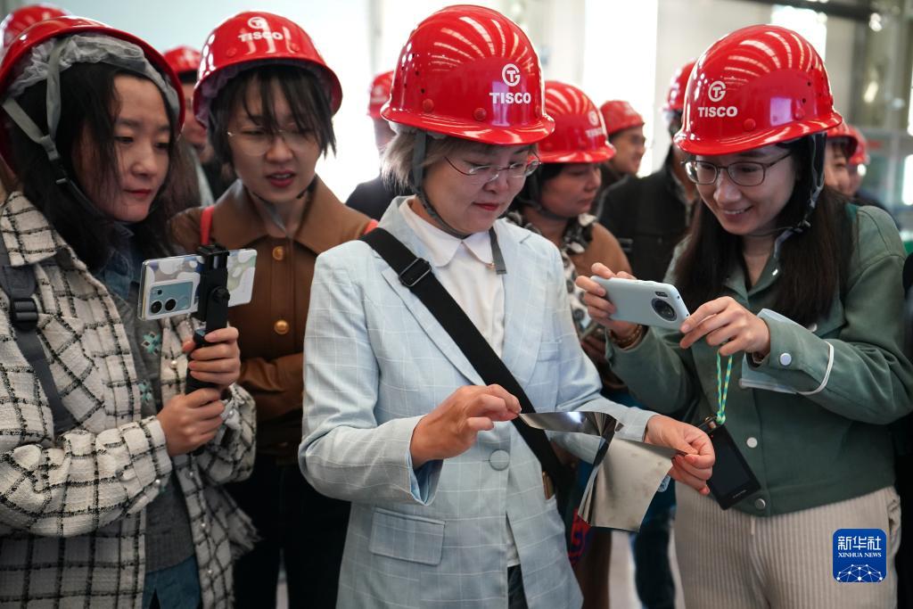 10月24日,參觀者在中國寶武山西太鋼不銹鋼精密帶鋼有限公司車間展示“手撕鋼”。