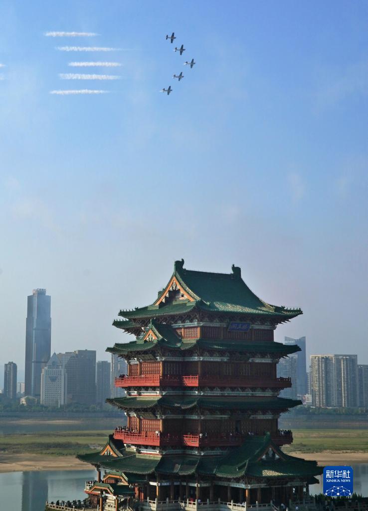 當日,2023中國航空產業大會暨南昌飛行大會組織空軍航空大學“紅鷹”飛行表演隊與歐洲環球之星特技飛行表演隊駕駛飛機在南昌市區上空進行了特技飛行表演,飛越滕王閣上空。