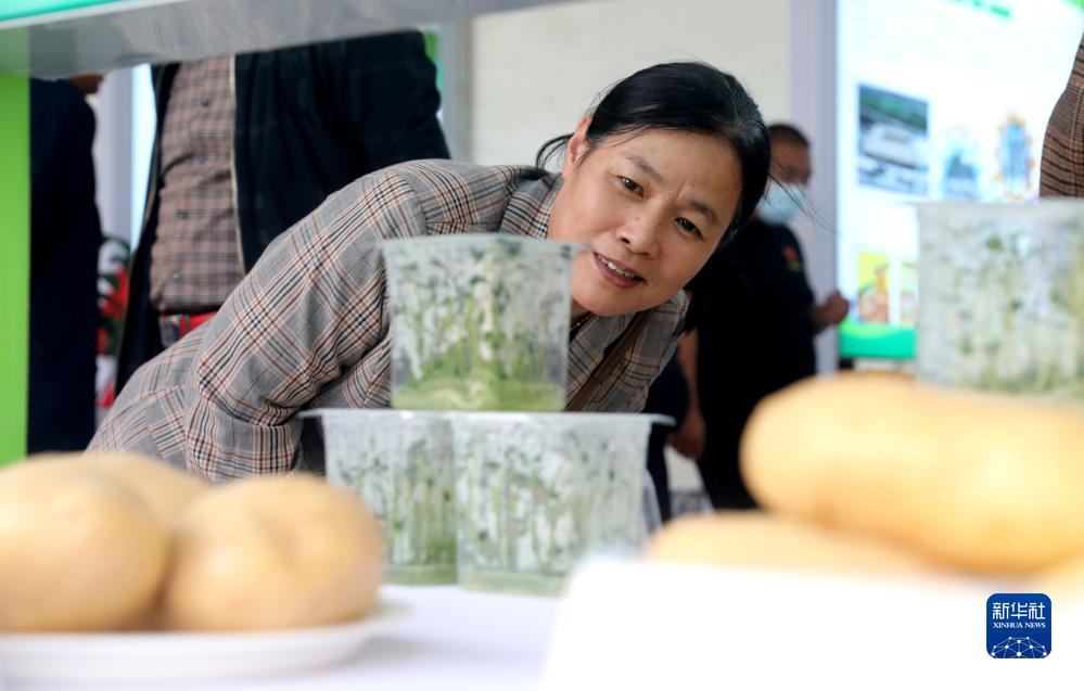 10月23日,觀眾在觀看馬鈴薯脫毒苗。