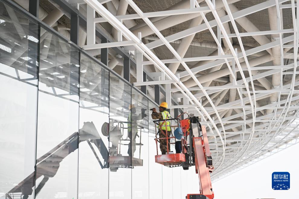 工人在雄安體育中心體育場施工(10月24日攝)。