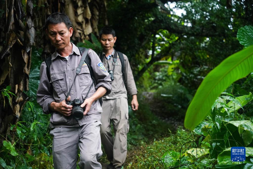 凌晨5點,海南長臂猿監測隊隊員李文永已在晨光泛起前抵達長臂猿?;顒拥膮^域。根據猿鳴定位尋蹤,統計海南長臂猿種群個數,拍攝照片和視頻,這些都是他的工作內容?!坝袝r為監測需要,背著幾十斤重的生活物資和裝備,在山上吃住也是常事。海南長臂猿的‘歌聲’,誰聽了都喜歡,很想一直能聽到它們的聲音”,李文永說。