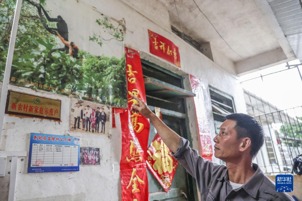 10月18日,海南長臂猿監測隊隊員李文永在家中給記者介紹墻上一張海南長臂猿照片背后的拍攝故事。