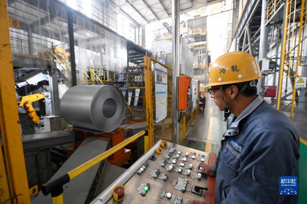 10月24日,在位于雙灤區的一家釩鈦新材料企業冷軋產品車間,工人在操作設備。