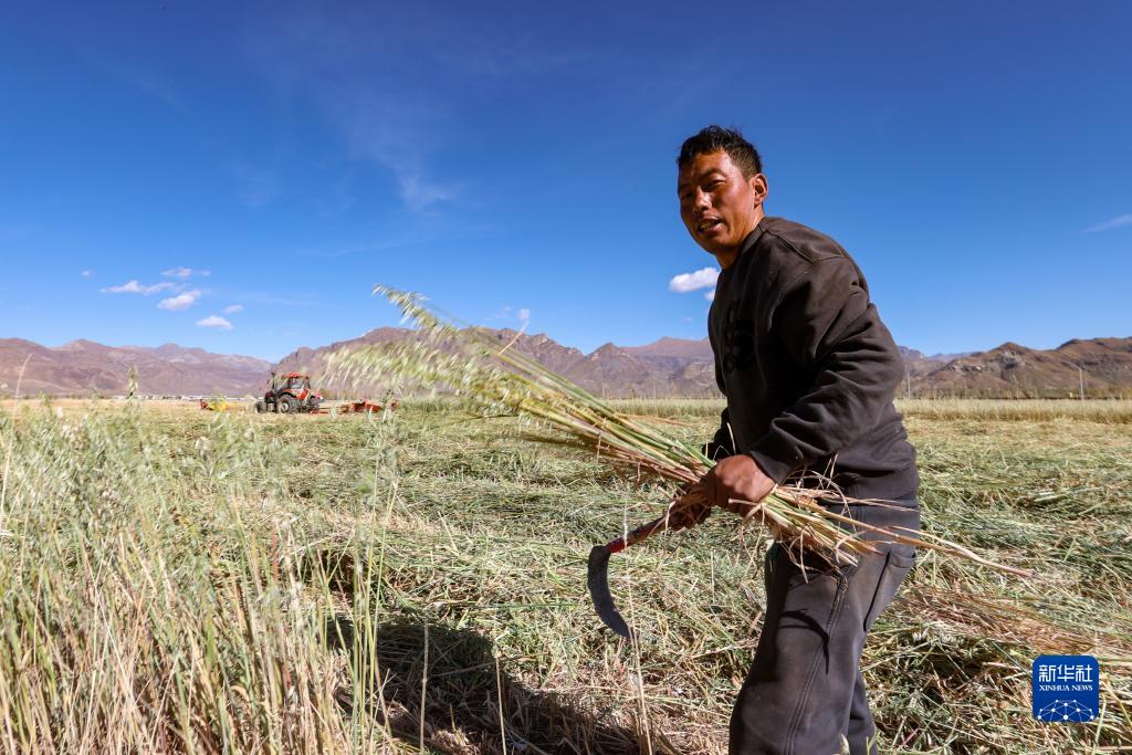 金秋時節,西藏各地人工種植牧草喜迎豐收。據西藏自治區農業農村廳介紹,截至10月15日,各地完成種草面積11.08萬畝,安排復種及房前屋后種草45.49萬畝,緩解了高寒天然草地的放牧壓力,同時助力當地農牧民增收致富。