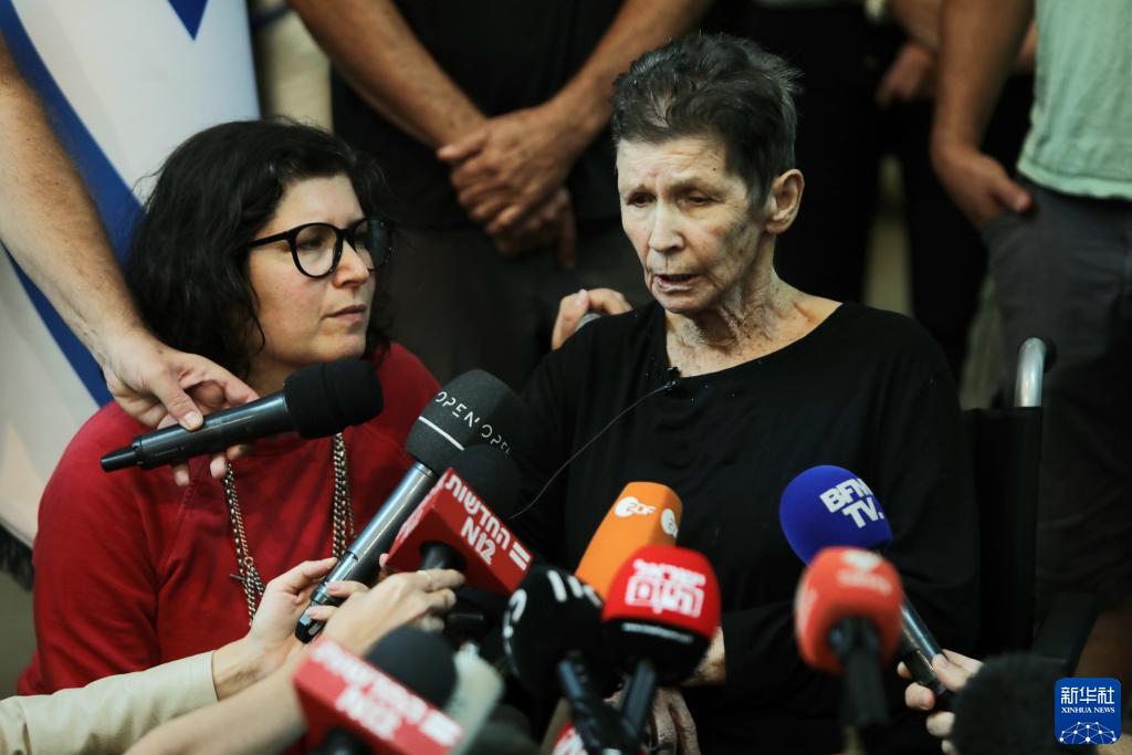 10月24日,獲釋的以色列被扣押人員約赫韋德· 利夫希茨(右)在以色列特拉維夫接受采訪。