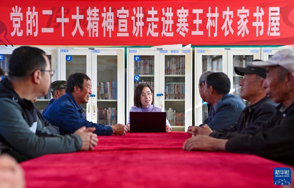 10月24日,山西省左權縣委黨校工作人員周麗芳在左權縣寒王村農家書屋為村民宣講。