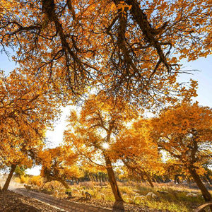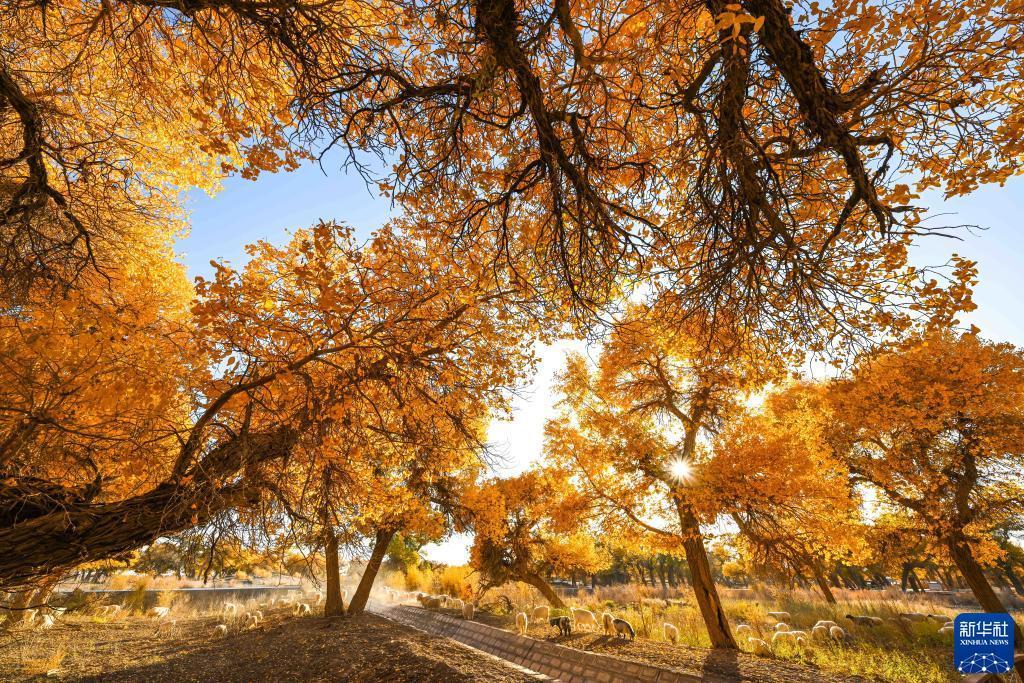 金秋時節,內蒙古自治區阿拉善盟額濟納旗的胡楊林披上“金裝”。