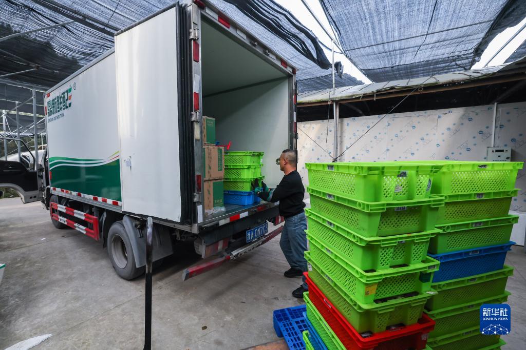 10月25日,在杭州市臨安區玲瓏街道雙源村的鼎新農業基地食用菌共富工坊,工人把當天采收的菌菇裝車運往杭州城區。該農業基地以培育、種植食用菌為主,為當地提供就業崗位60余個。