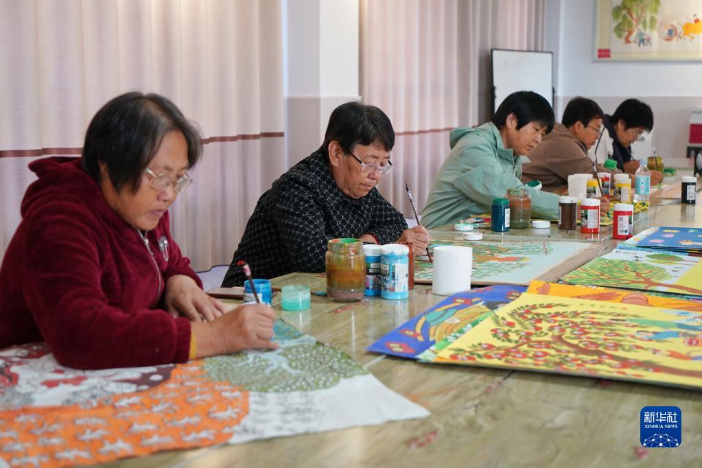 10月25日,辛集市王下村農民在趕制農民畫產品訂單。