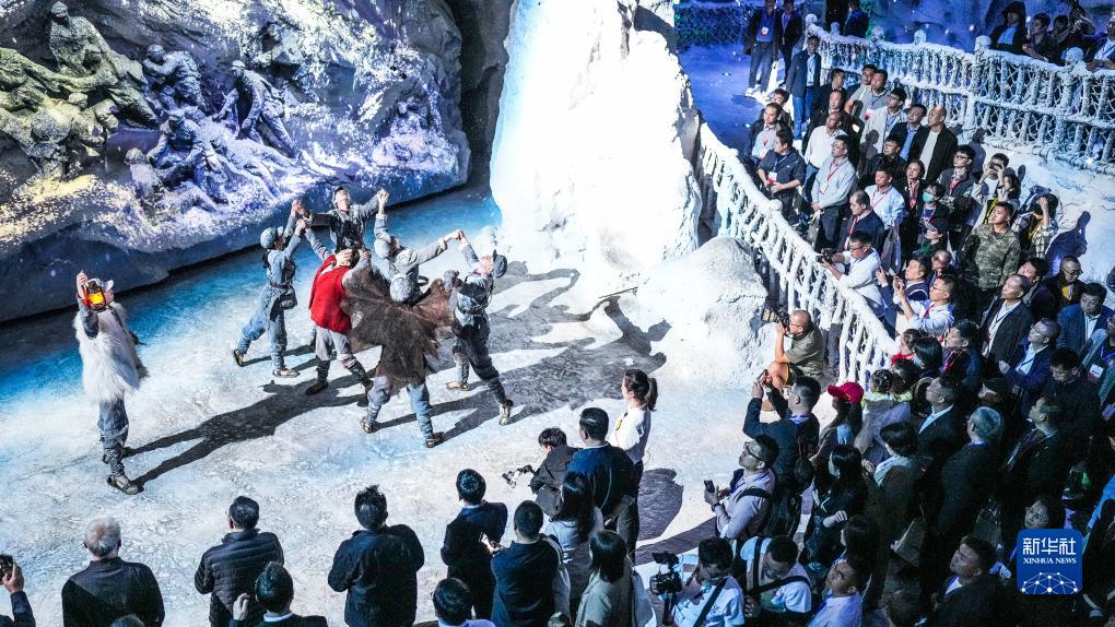 觀眾在位于貴陽市的“紅飄帶”數字體驗館內觀看體驗長征故事(2023年10月22日攝)。以長征為主題的數字體驗館——“紅飄帶”項目利用全息影像、三維聲場等新技術再現偉大長征。該項目是貴州推進長征國家文化公園建設的重要標志性工程,通過“藝術+科技”的形式,講述長征故事,傳承紅色基因。