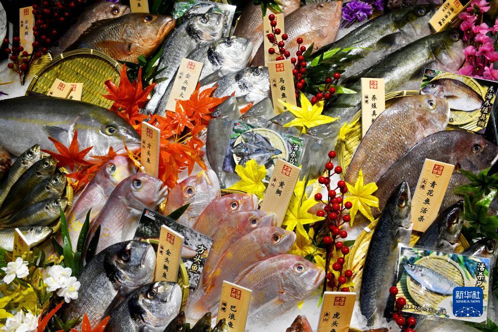 10月25日在漁業博覽會上拍攝的參展企業水產品擺臺。