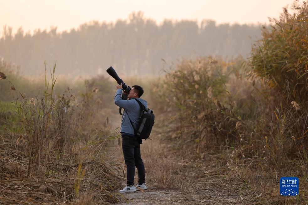 10月24日,韓戰橋在雄安新區孝義河河口濕地拍攝野生鳥類。