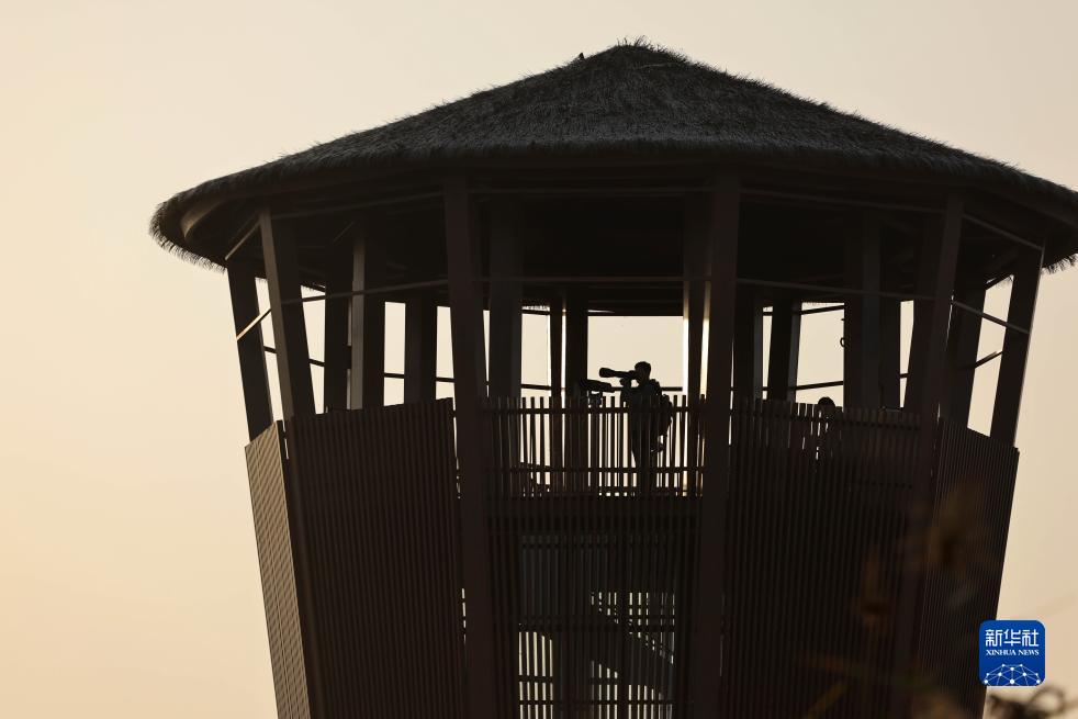 10月24日,韓戰橋在雄安新區孝義河河口濕地瞭望塔拍攝野生鳥類。