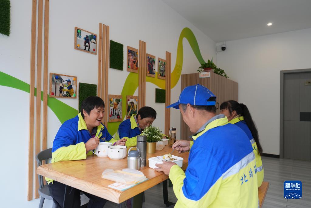 10月25日,環衛工人在重慶市北碚區云清路“勞動者港灣”吃午飯。