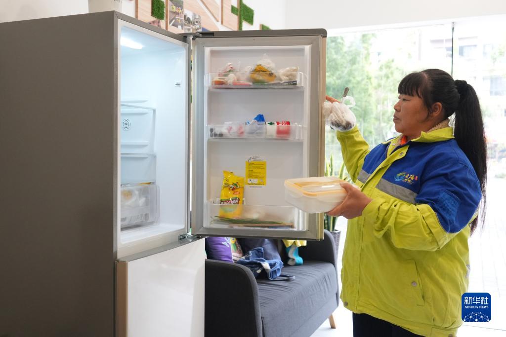 10月25日,在重慶市北碚區云清路“勞動者港灣”,一名環衛工人從冰箱內取出午飯準備加熱。