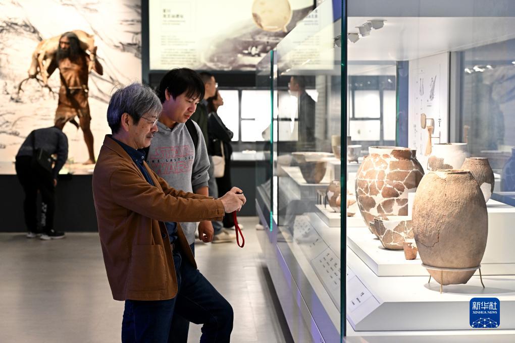10月25日,參加第四屆中國考古學大會的外國專家、日本九州大學教授宮本一夫(前)在陜西考古博物館內參觀拍攝。