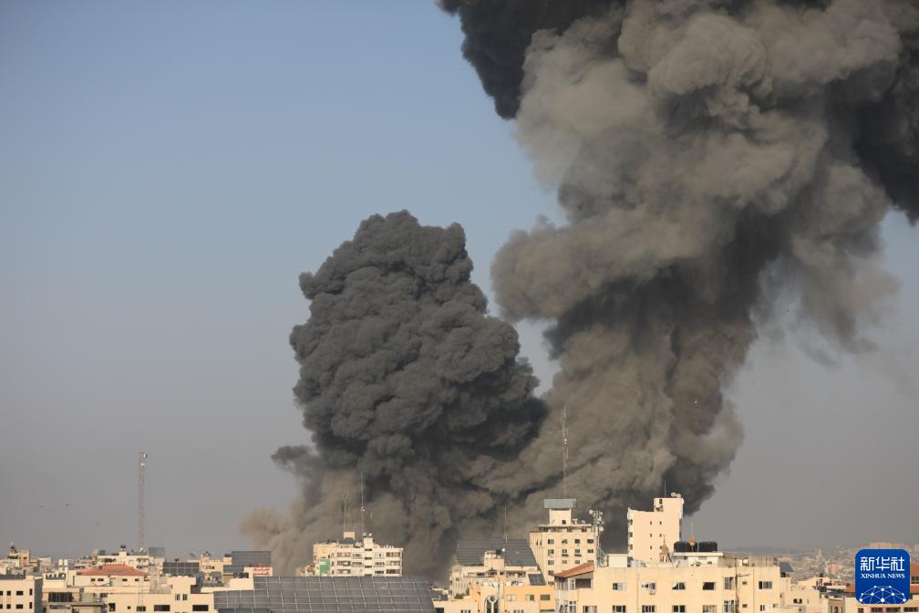 這是10月25日在加沙城拍攝的以色列轟炸加沙地帶后升起的濃煙。