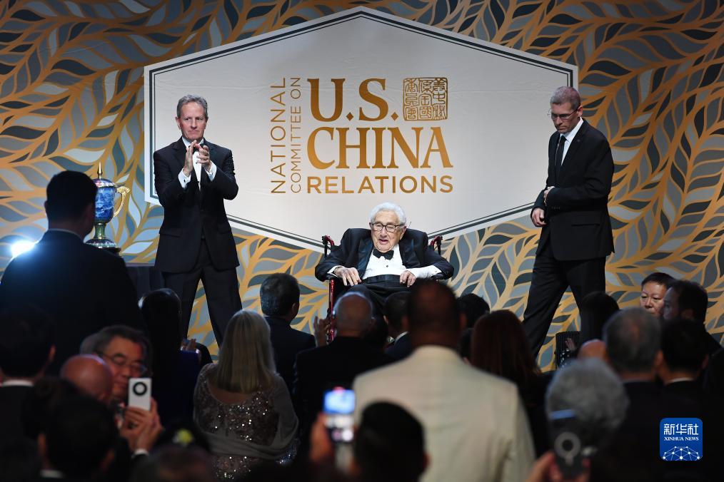 美中關系全國委員會24日在紐約舉行年度頒獎晚宴,兩國領導人向晚宴致賀信。晚宴向美國前國務卿基辛格頒獎,表彰他為中美關系發展所作的卓越貢獻。百歲高齡的基辛格在接受頒獎時,全場嘉賓報以持久熱烈掌聲。他在獲獎致辭中說,“我一生中一半時間都在為美中關系工作”,美中之間的和平與合作至關重要,符合兩國和世界的利益?;粮窈粲趺乐袃蓢餐苿与p邊關系重回正軌,“正如我50年前所相信的那樣,我們能找到克服困難的出路”。