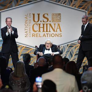 10月24日,美國前國務卿基辛格(中)出席在紐約舉行的美中關系全國委員會年度頒獎晚宴。