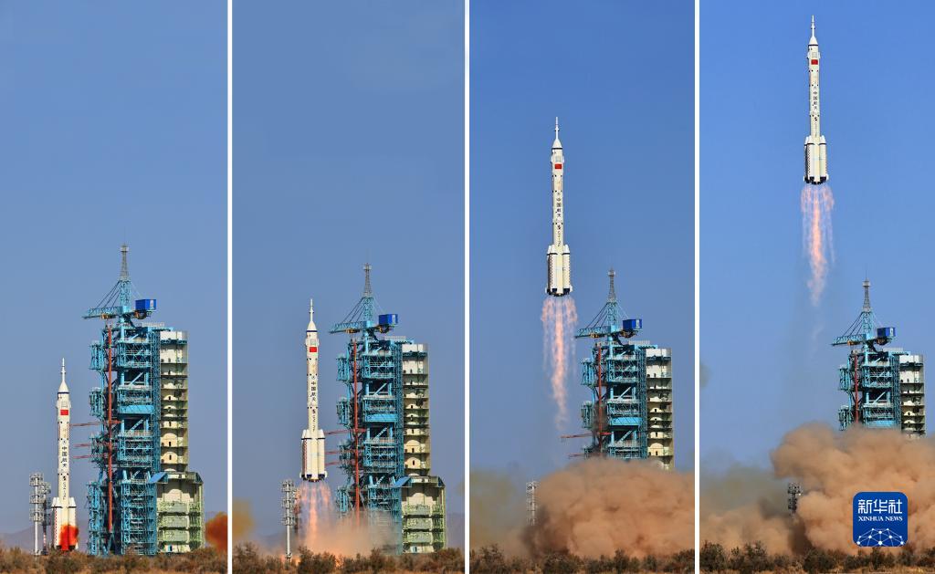 這是神舟十七號載人飛船發射升空過程(拼版照片,10月26日攝)。