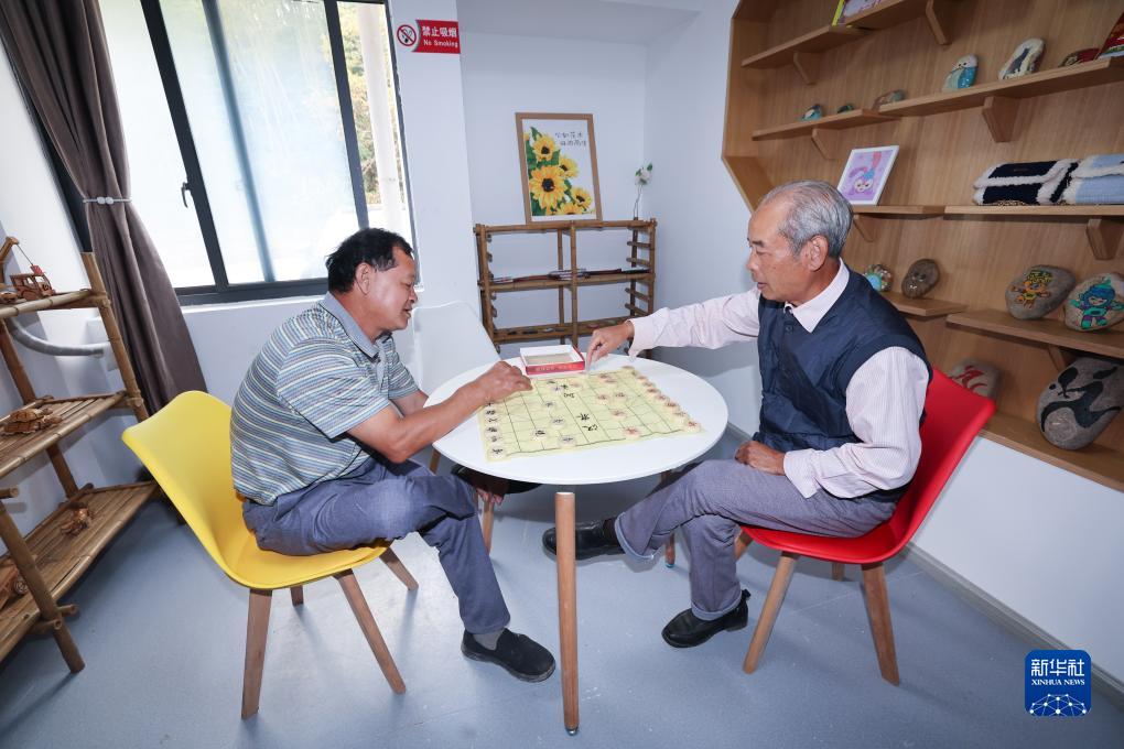 10月26日,兩位老人在杭州市富陽區湖源鄉居家養老服務中心下棋。