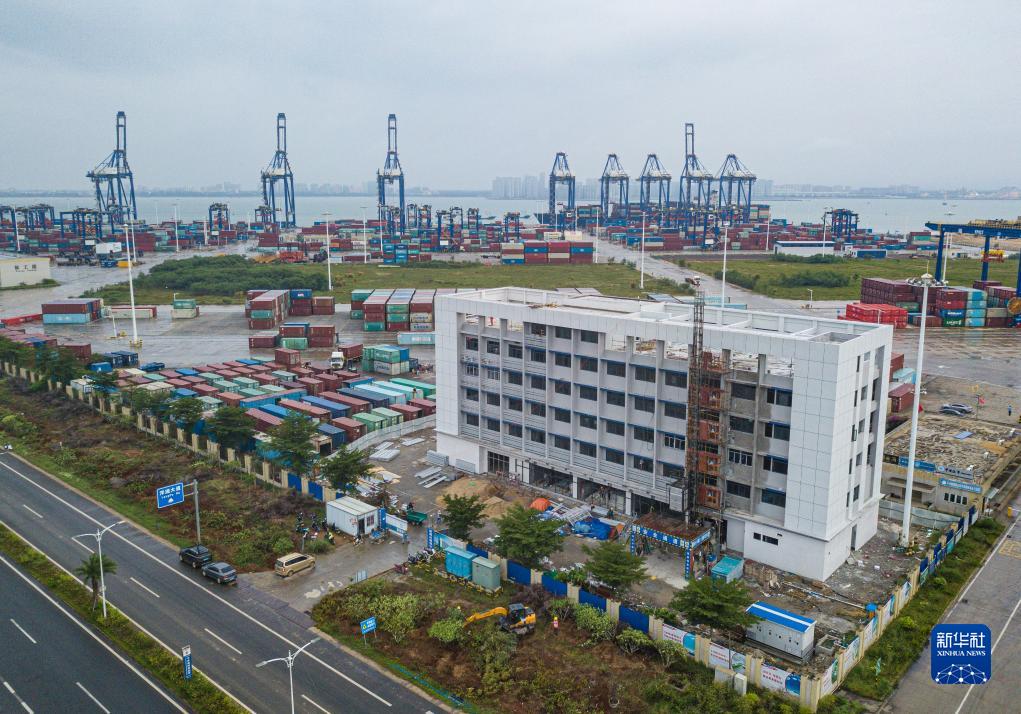 10月24日拍攝的建設中的洋浦港封關運作項目海事邊檢業務用房(無人機照片)。
