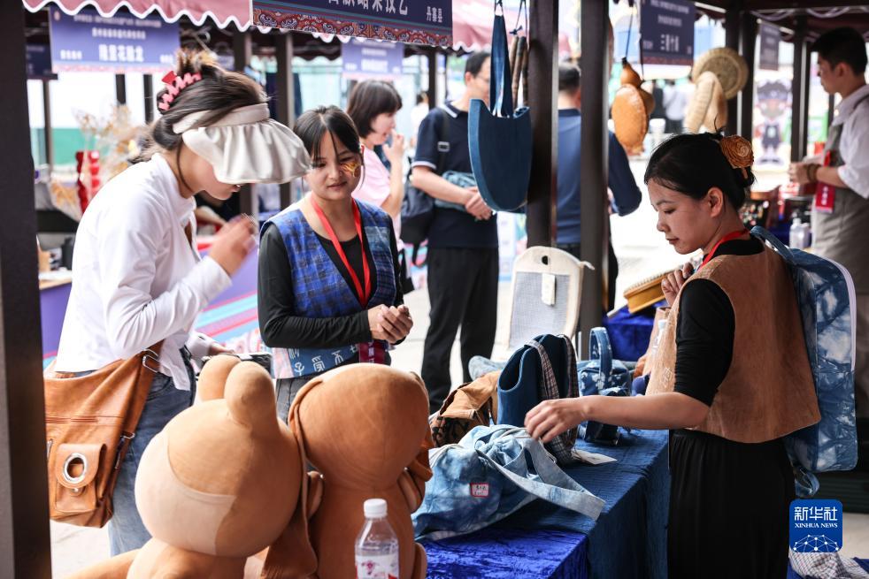 10月25日,游客在臺江縣球場旁的非遺集市上選購特色產品。