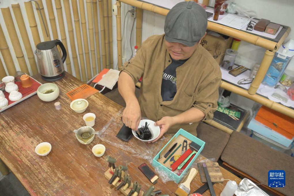 來到福州后,黃守堃致力于加強兩岸的漆藝交流,不僅將臺灣漆藝創新技法與福州漆藝結合,還開設體驗課并招收學徒。
